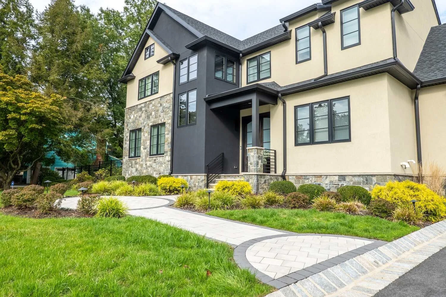 This breathtaking outdoor transformation in Old Tappan, NJ, was designed to complement the clean, modern architecture of this new-build home while ensuring seamless functionality and lasting beauty. From a grand front entryway to a sleek poolside retreat, every detail was carefully planned to create a harmonious outdoor experience. Using Techo Bloc Everest in Greyed Nickel with charcoal accents, a gunite pool, a spacious patio, and lush plantings, this project blends sophisticated design with practical elegance.