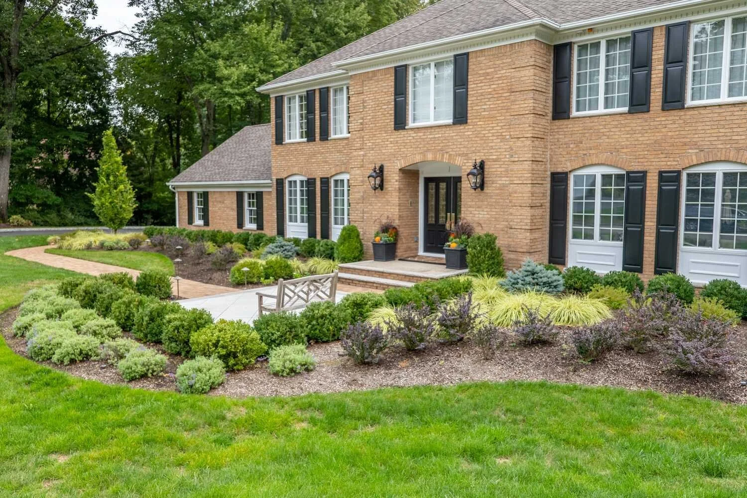 The homeowners sought an entryway that honored their home’s red brick architecture while introducing a grander sense of scale and connection to the landscape. To achieve this, the design required thoughtful material selection to match the existing brickwork as closely as possible.