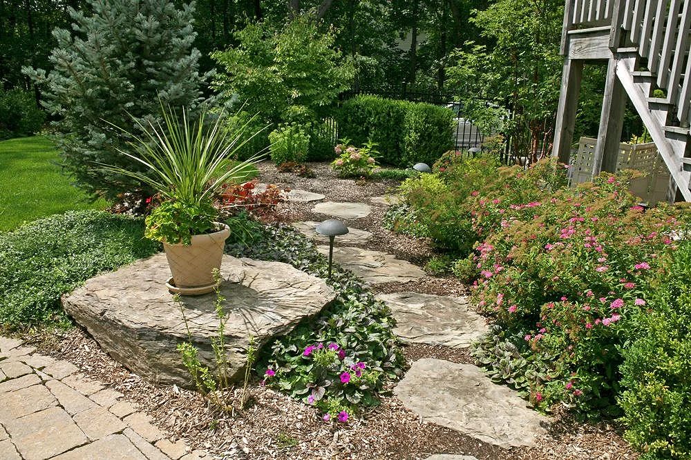 Transforms a flat yard into a dynamic, believable landscape, adding visual drama and the soothing sound of cascading water to create a sensory escape.Reimagined paver patio for versatile outdoor seating and entertaining