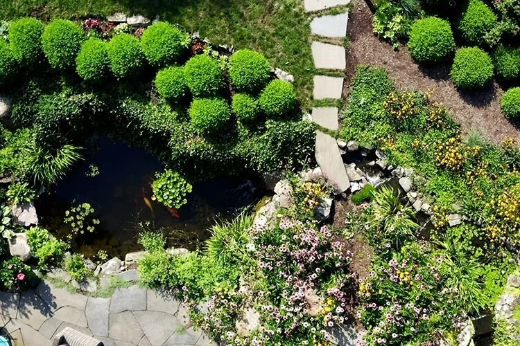 Serenity Garden Feature: A rustic bubbling fountain draws guests down a stepping stone path into a quiet, contemplative corner of the yard.