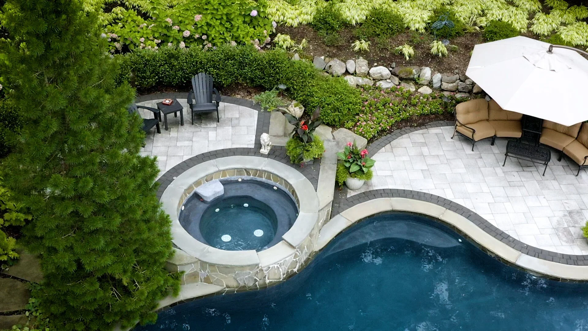 Seamless Material Integration: Unilock Umbriano pavers, paired with a charcoal onyx accent, bring visual consistency across new and existing elements.