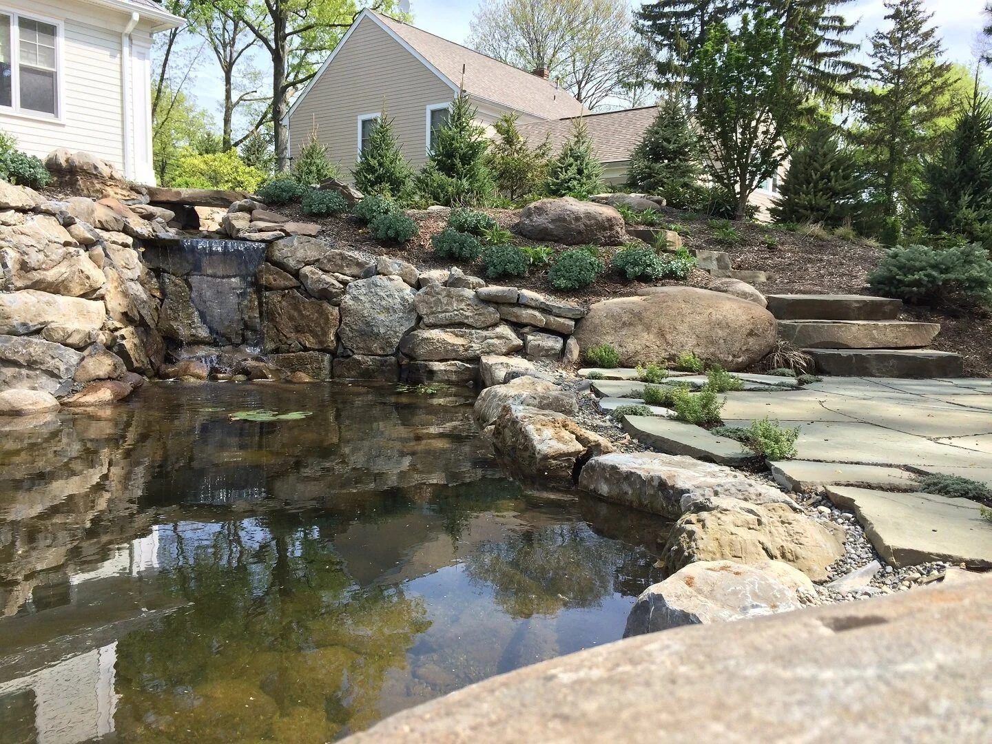 Your backyard can be your private sanctuary with a calming waterfall & pond.