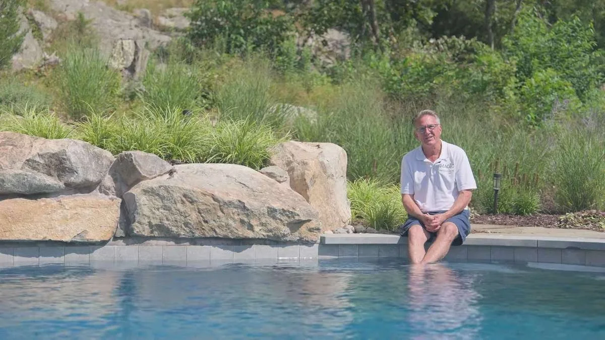 In West Milford, New Jersey, Drew Shepard shows how Magic Landscaping designs around what’s already there, blending pool construction with the site’s natural rock and locally matched stone for a cohesive feel.