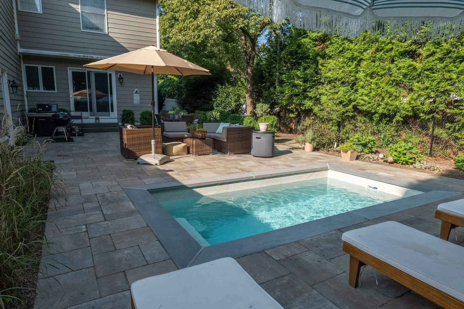 This serene outdoor transformation in Ramsey, NJ, exemplifies how thoughtful design can turn a smaller yard into a luxurious retreat. Featuring a Soake plunge pool, paving stone patio, and cozy fire pit, the space was carefully designed in three phases to ensure minimal disruption for the homeowners.