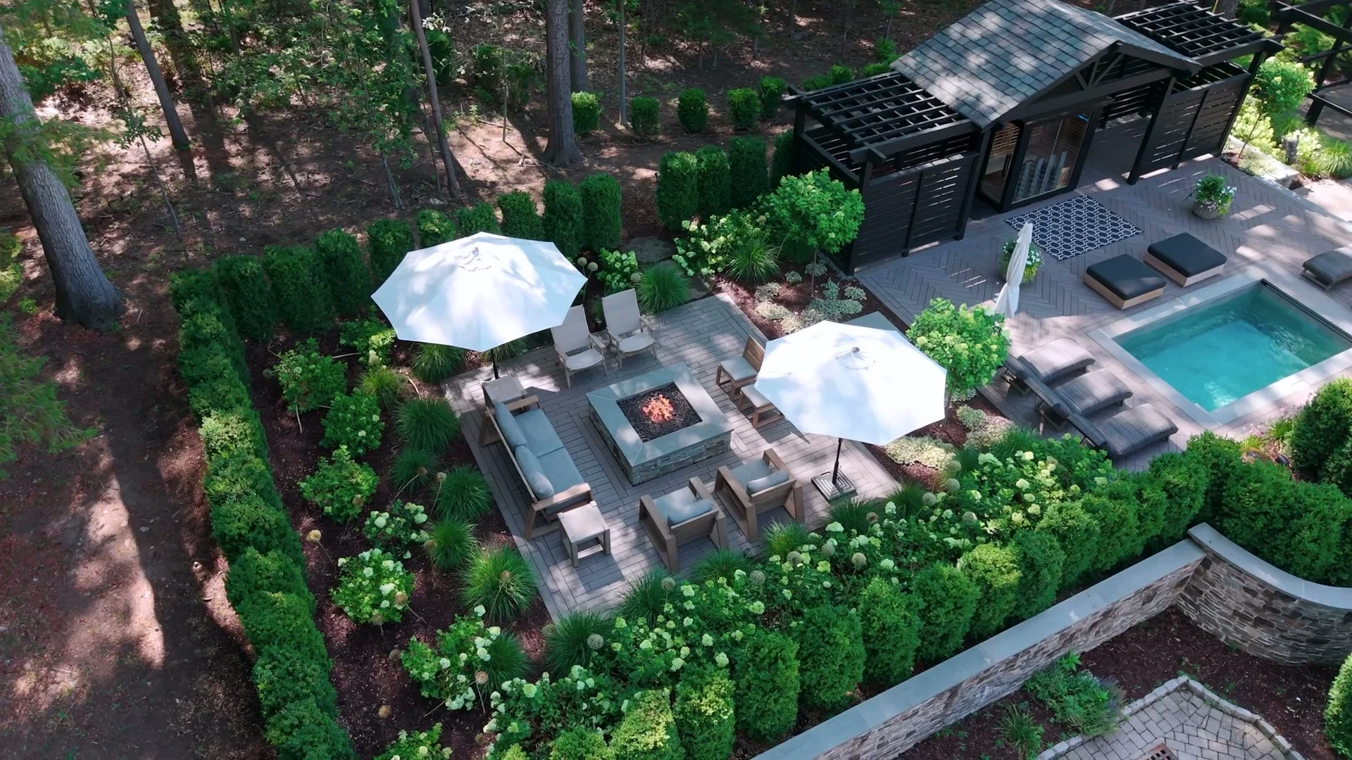 Integrating multiple structures, a pool, sauna, cold plunge, and dual fire features, required exceptional precision to maintain flow and aesthetic unity. Magic Landscaping addressed grading, drainage, and access concerns with technical finesse, ensuring smooth transitions between distinct outdoor zones while preserving the property’s natural contours.