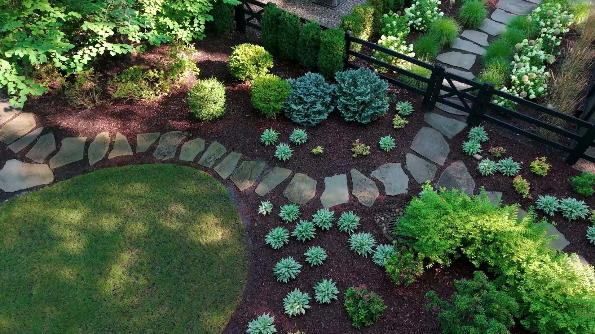 Layered Plantings: A curated blend of Andromeda, ferns, pulmonaria, hydrangeas, and helicarpa, chosen for texture and year-round calm rather than constant bloom.